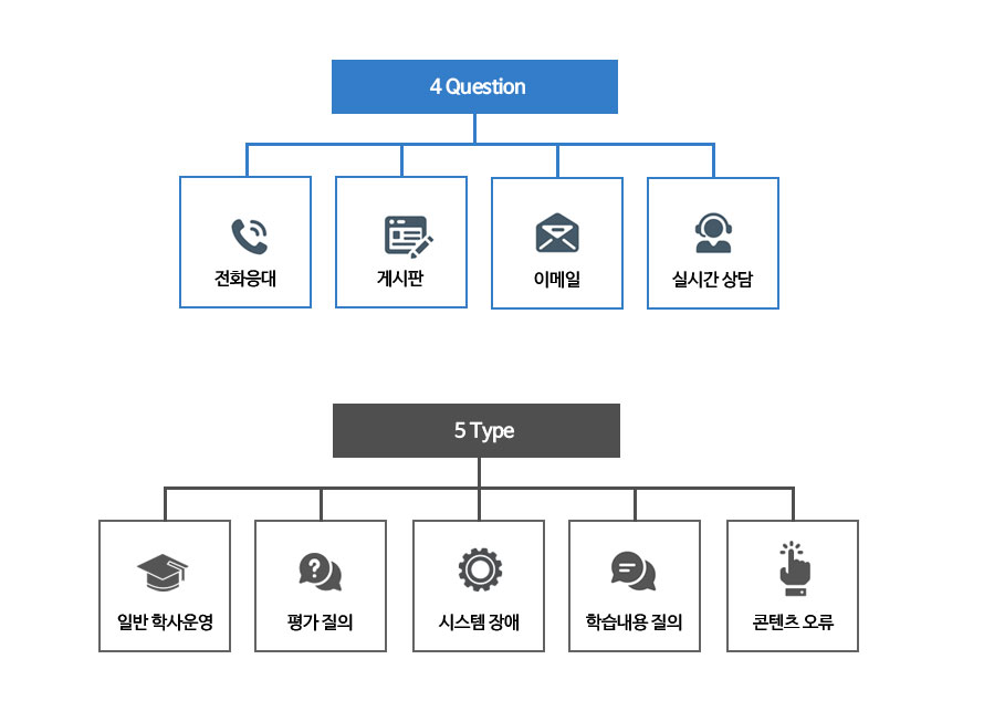 e-learning 특성상 빈번하게 발생하는 학습자, 운영자간 질의상담 활동의 중요성을 인지하고 질의상담 대응 원칙과 체계,